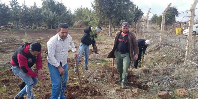 نفذ مجلس بلدية قرية سهوة البلاطة في محافظة السويداء بالتعاون مع فعاليات المجتمع المحلي اليوم حملة تشجير تضمنت زراعة اكثر من ألف غرسة حراجية ضمن القرية ومدخلها.