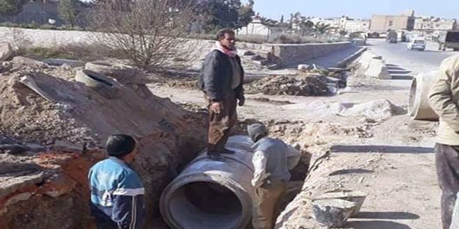 تقوم المؤسسة العامة للمواصلات الطرقية في محافظة ريف دمشق بتركيب عبارات لتصريف مياه الأمطار في مختلف المحاور الرئيسية للمحافظة لتفادي حصول تراكمات مطرية نتيجة الأحوال الجوية السائدة.