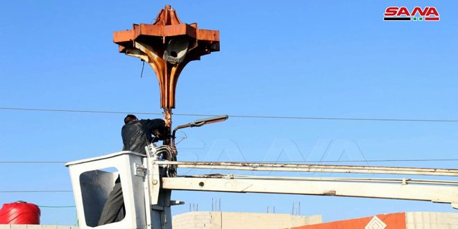 تنفيذ مشروع لإنارة الشارع الرئيسي بالطاقة الشمسية في بلدة نبع الصخر بالقنيطرة