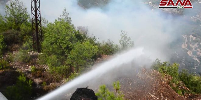 تواصل جهود مكافحة حرائق الأحراج بريف اللاذقية