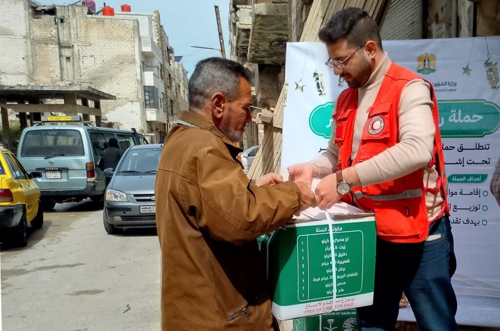 وزعت مديرية الشؤون الاجتماعية والعمل بالتعاون مع فرع منظمة الهلال الأحمر في محافظة حمص اليوم، 403 سلل إغاثية على العائلات الأكثر احتياجاً في حي الخالدية بحمص، ضمن حملة “رمضان الخير والنصر”.