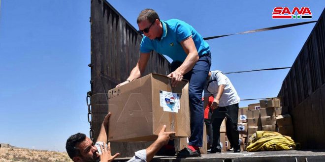 تم اليوم توزيع مساعدات إنسانية في مركز الإيواء بمدينة حسياء الصناعية مقدمة من الشعب الروسي في إقليم (خانتي مانسيسك يوغرا) وحقائب وقرطاسية للأطفال في قرية رام العنز بريف حمص إضافة إلى تقديم مولدة للكهرباء.