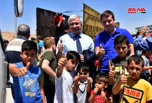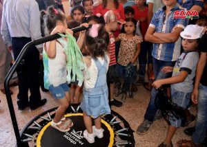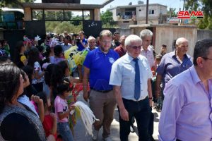 بدوره أشار الدكتور بسام منصور مدير المدينة الصناعية بحسياء إلى أنه تم اليوم توزيع مساعدات إنسانية مقدمة من الشعب في إقليم خانتي مانسيسك بروسيا الاتحادية إلى أطفال الشهداء والجرحى في مركز الإيواء في حسياء.