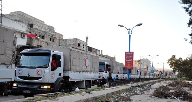 بدعم من الحكومة السورية وبإشراف اللجنة العليا للإغاثة واصلت الهيئة العامة للاجئين الفلسطينيين العرب ووكالة الأمم المتحدة لإغاثة وتشغيل اللاجئين الفلسطينيين “الأونروا” توزيع المساعدات الغذائية والطبية على أهالي مخيم اليرموك الذين غادروا المخيم هربا من جرائم التنظيمات الإرهابية المسلحة.