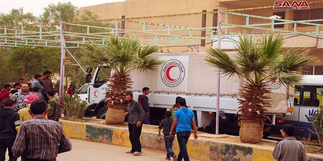 توزيع مساعدات مقدمة من عدد من الجميعات الأهلية على المقيمين في مركز الإقامة بالدوير 2018-04-25 عمار سفرجلاني