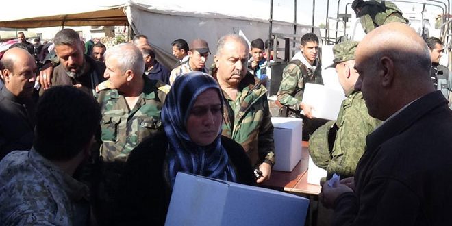 توزيع 200 سلة غذائية مقدمة من روسيا للمهجرين جراء اعتداء التنظيمات الإرهابية في بلدة موثبين بدرعا