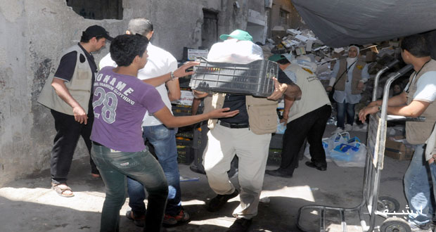 توزيع 300 سلة غذائية وإخراج 9 حالات إنسانية من مخيم اليرموك