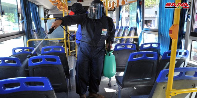 وأشارت عضو المكتب التنفيذي لقطاع الخدمات والمرافق البلدية بمحافظة دمشق انتصار جزماتي لمندوبة سانا إلى أن الحملة تتضمن تعقيم وسائل النقل العامة والسرافيس بالتنسيق مع المؤسسة العامة للنقل الداخلي إضافة إلى توزيع أكبر عدد من الكمامات على المواطنين وتوعيتهم بأهمية ارتدائها وتبديلها ورميها في حاويات القمامة.