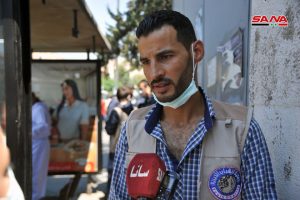 من جانبه أشار رئيس مجلس إدارة جمعية “ساعد” عصام حبال إلى أنه تم اليوم توزيع 7 آلاف كمامة قطنية بشكل مجاني حيث يتم التركيز خلال هذه الفترة على توزيع الكمامات نتيجة حاجة أعداد كبيرة من المواطنين إليها لافتاً إلى أهمية حملات التعقيم ضمن وسائل النقل الداخلي والسرافيس كونها مكاناً للتجمع واحتمالية انتشار الفيروسات والأمراض فيها عالية ولذلك تحتاج إلى تعقيم بشكل مكثف.