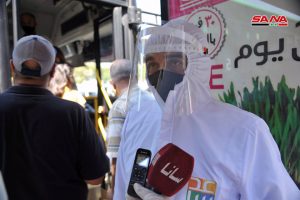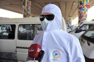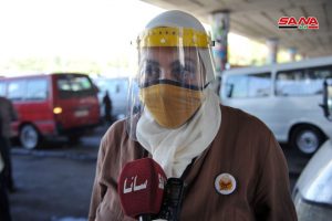 بالتعاون مع محافظة دمشق أقام عدد من الجمعيات الخيرية التطوعية حملة لتعقيم وسائل النقل الداخلي والسرافيس وتوزيع الكمامات القماشية تحت جسر السيد الرئيس بهدف توعية المواطنين بأهمية ارتداء الكمامة للحد من انتشار فيروس كورونا.