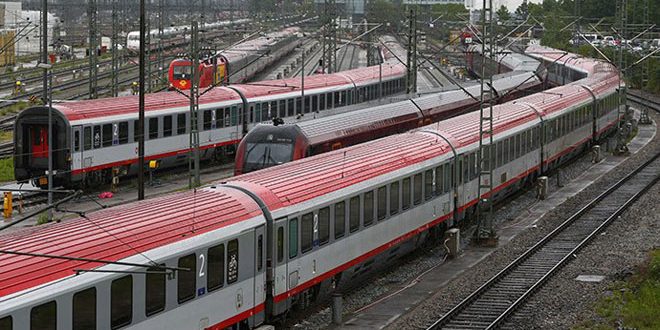 توقفت حركة قطارات المسافات الطويلة في المانيا اليوم بسبب إضراب موظفيها عن العمل على مستوى البلاد لمدة أربع ساعات وذلك للمطالبة برفع الأجور.