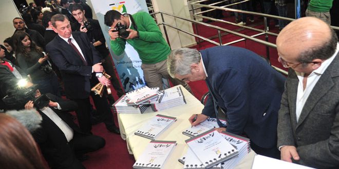 نظمت إدارة مشروع “بكرا إلنا” بالتعاون مع محافظة دمشق حفل توقيع المنهج الإعلامي لمشروع “بكرا إلنا” الذي يوجه المدربين في المشروع ويساعدهم في بناء الأسس والقواعد التي يتبعونها في تدريب الأطفال وذلك في نادي المحافظة بدمشق.