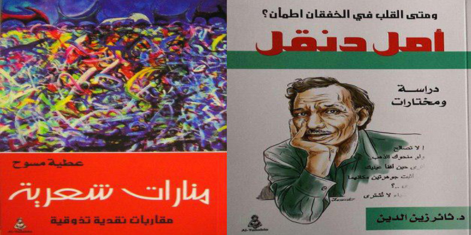 يشار إلى أن كتاب “أمل دنقل ..دراسة ومختارات” يضم بحثا في حياة هذا الشاعر المصري الراحل وشعره و أهم سماته الفنية إضافة إلى مختارات من نصوصه فيما يتناول كتاب “منارات شعرية” مقاربات نقدية تذوقية لأكثر من عشرة شعراء معاصرين والكتابان صادران عن دار الينابيع.