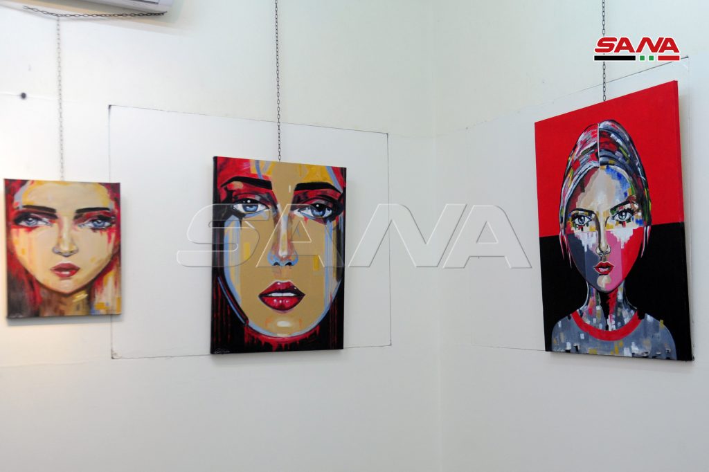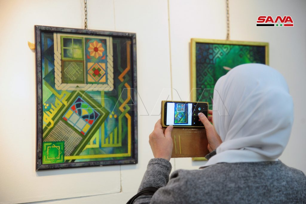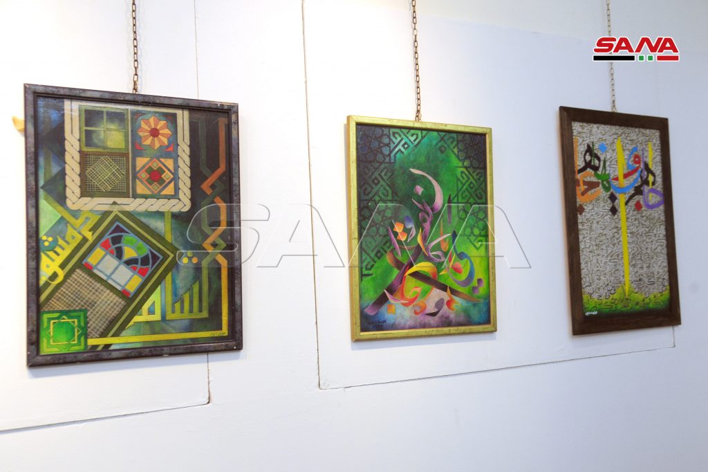وجسدت لوحات المعرض الذي ضم نتاجات الفنانين محمد حديد ومحمد دبور وخلود كريمو ملامح في الفكر والروح من خلال تجسيد الرقص الصوفي في اللوحات والخط العربي الذي ينتمي للمدرسة الشامية.