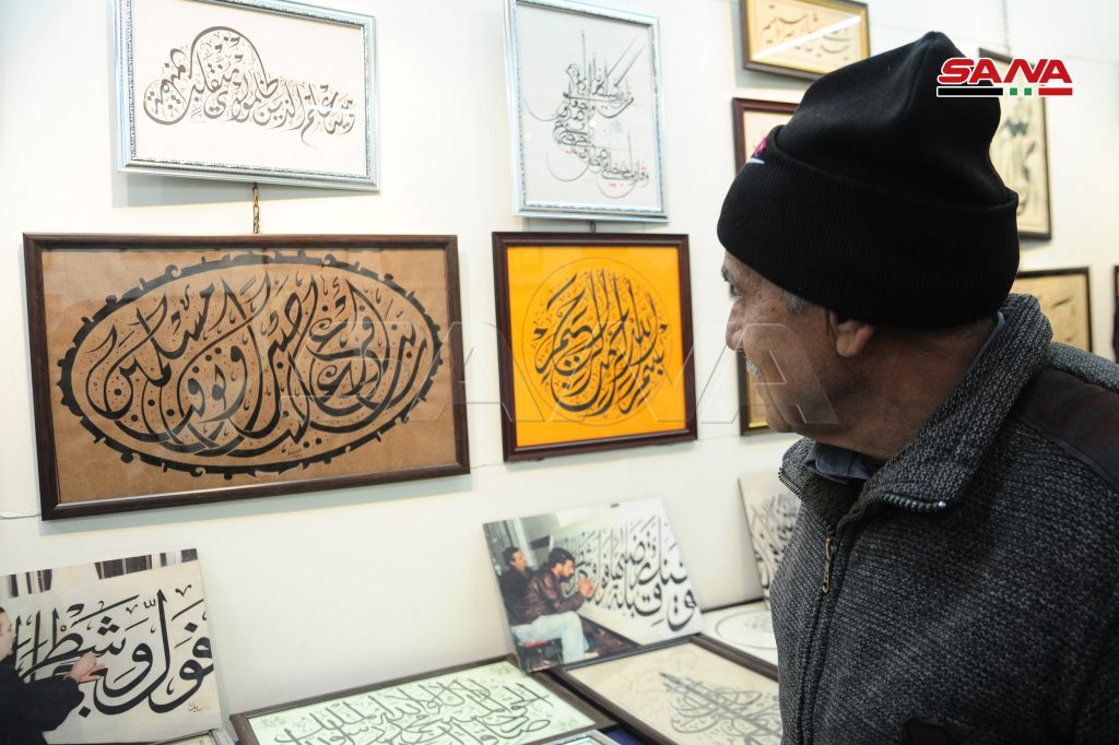 الخطاط حديد أوضح لـ سانا أنه شارك بـ 45 لوحة معظمها بخط الثلث إضافة إلى الكوفي والديواني والمغربي وسواه “لأن من يكتب بها يعد من شيوخ الخط ومن المتمرسين المتقنين نظراً لصعوبة الكتابة بها”لافتاً إلى اتباعه المدرسة الشامية في الخط والذي يعتبر الخطاط بدوي الديراني من المؤسسين لها وتتميز بنعومة الخط وروحانيته وتختلف عن المدارس الأخرى الفارسية والتركية وغيرها.