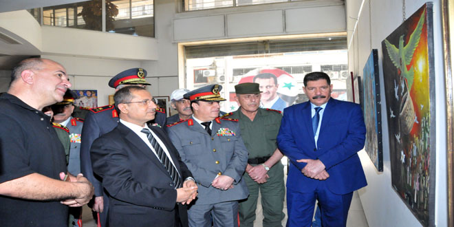 والمعرض الذي افتتحه اللواء محمد الشعار وزير الداخلية يحمل عنوان تحية لشهداء قوى الأمن الداخلي حيث سيتم تقييم الأعمال المشاركة عبر لجنة تضم فنانين ونقادا لاختيار الأعمال الفائزة بالمراكز الثلاثة الأولى وسيقدم لأصحابها جوائز مالية.