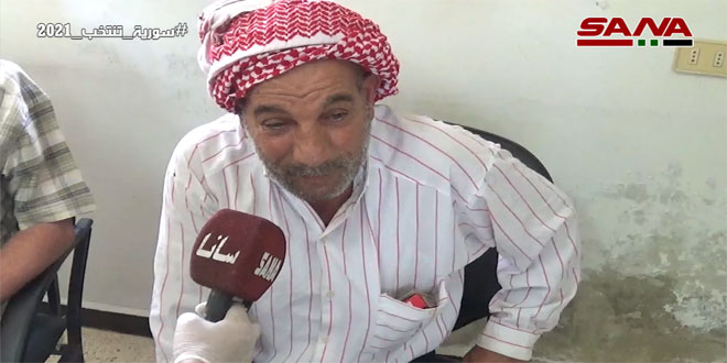 وقال العم شكيب لمراسل سانا: “رغم ظروفي الصحية الصعبة قدمت لأداء الواجب الوطني والمشاركة بالانتخابات” مؤكداً أن بلدة بصير صمدت بوجه الإرهاب بفضل سواعد أبطال الجيش العربي السوري.