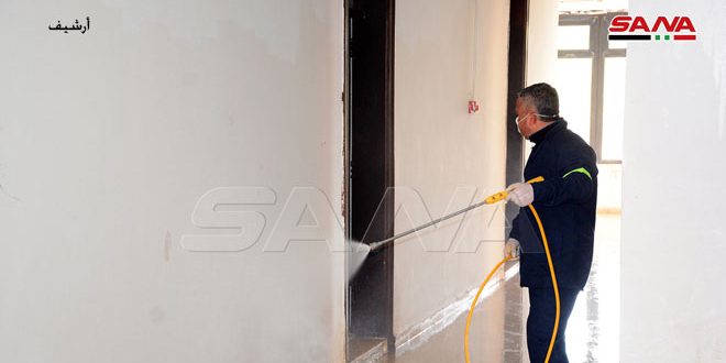 وفي تصريح لمراسل سانا بين نائب رئيس الجامعة لشؤون التعليم المفتوح الدكتور معن ديوب أنه من ضمن الإجراءات المتخذة تكثيف عمليات التعقيم والتنظيف في جميع الكليات والمعاهد وفي المدينة الجامعية ومباني الإدارة مع تزويد مداخل الجامعة والكليات بمواد التعقيم وأجهزة قياس الحرارة وارتداء الكمامات وتشكيل لجان وفرق طبية بمشاركة الاتحاد الوطني لطلبة سورية وبإشراف كليات الطب البشري وطب الاسنان والصيدلة للقيام بحملة شاملة للتعقيم وتطهير جميع مرافق وقاعات الجامعة ومبانيها.