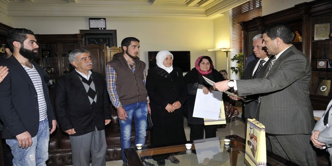 جامعة دمشق تكرم عددا من ذوي الشهداء وتمنح شهادات فخرية لشهدائها