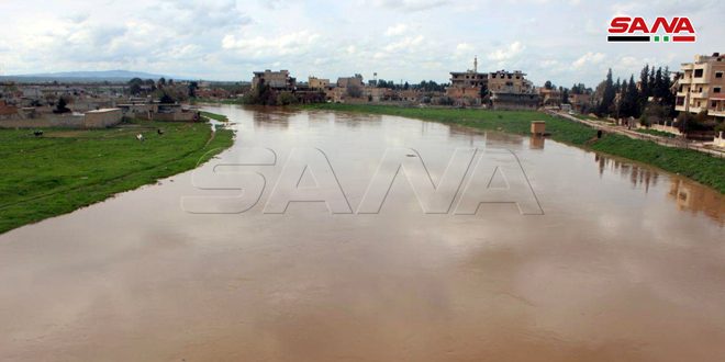 جريان نهر الخابور في مدينة الحسكة جراء الأمطار