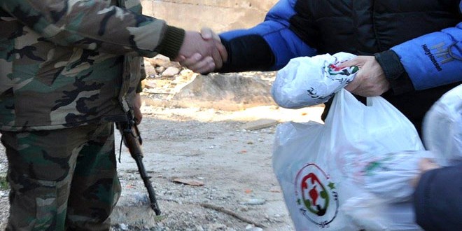 وذكر عروة درويش رئيس الجمعية أن المواد الموزعة التي تضمنت بعض المستلزمات الشتوية من قفازات ولفحات وقبعات وجوارب ما هي إلا هدايا رمزية تقدم من أبناء الشعب السوري إلى مغاوير جيشه البطل كوسيلة للتعبير عن عمق محبته وشكره ودعمه له في المهام البطولية التي يقوم بها مؤكدا أن ما تقوم به الجمعية في هذا الإطار هو نوع من المساهمة الشبابية في الدفاع عن الوطن وجيشه في مختلف الميادين.