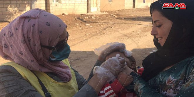 تسعى المنطقة الصحية في القامشلي بمحافظة الحسكة للوصول إلى كافة الأطفال المستهدفين في حملة اللقاح ضد شلل الأطفال ولا سيما الأطفال في الريف البعيد من خلال الفرق الجوالة التي لعبت دورا كبير في تحصين الأطفال والوصول إليهم في منازلهم.