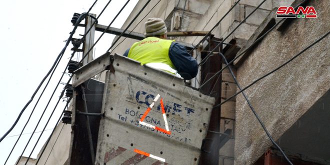 جهود كبيرة يبذلها عمال طوارئ شركة كهرباء حمص لإصلاح الأعطال الكهربائية التي تطرأ جراء الضغط الكبير على الشبكة والظروف الجوية.