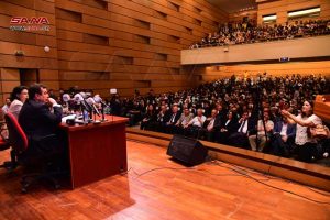 وبهدف ربط مخرجات التعليم العالي مع الحياة المهنية ورفد الكوادر العلمية بحصيلة مسيرات عمل الشخصيات البارزة في المجالات كافة احتضنت جامعة دمشق اليوم لقاء حوارياً جمع الإعلامي اللبناني والوزير السابق جورج قرداحي مع طلبة وأساتذة وإعلاميين في جلسة تفاعلية بعنوان (واقع الإعلام ودور الإعلامي في تغييره) وذلك على مدرج جامعة دمشق.
