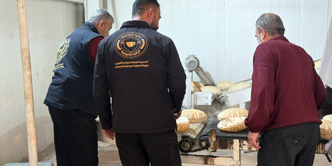 جولة لفرق الرقابة التموينية على عدد من الأفران في دمشق للتأكد من الأوزان وجودة مادة الخبز ومدى الالتزام بالشروط الصحية. 2025-01-08