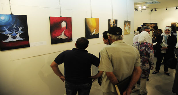 بدوره أوضح الفنان أحمد مفتي الأستاذ بكلية الفنون الجميلة أن المعرض يؤثر بإحساس المتلقي ويقدم رؤية كثيفة وبعيدة النظر “فاستطاعت الفنانة التشكيلية أن تحلق باتجاه المطلق متأثرة بجلال الدين الرومي من خلال رسم الحركات التي يقوم بها المتصوف بمعان سامية تذهب بأصولها إلى مدينة قونية مركز المولوية وتدل على عشق صاف”.