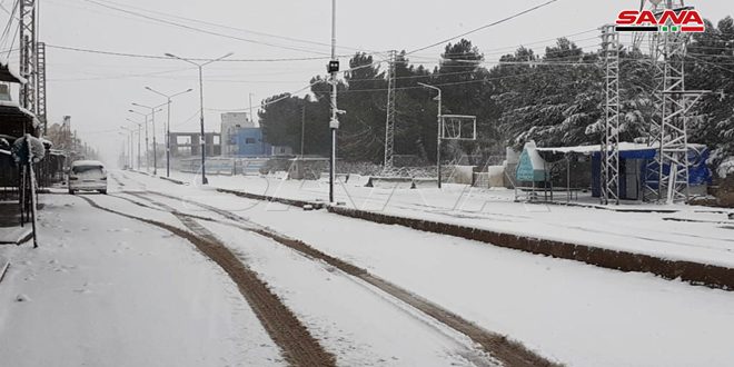 وفي محافظة الحسكة طريق القامشلي المالكية وطريق القامشلى عامودا غير سالكين بسبب تراكم الثلوج.