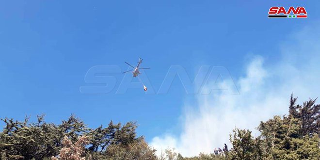 من عمليات إطفاء الحريق في أعالي جبال شطحة بريف حماة الغربي بمشاركة فرق الإطفاء والدفاع المدني وحوامات الجيش 2020-09-09