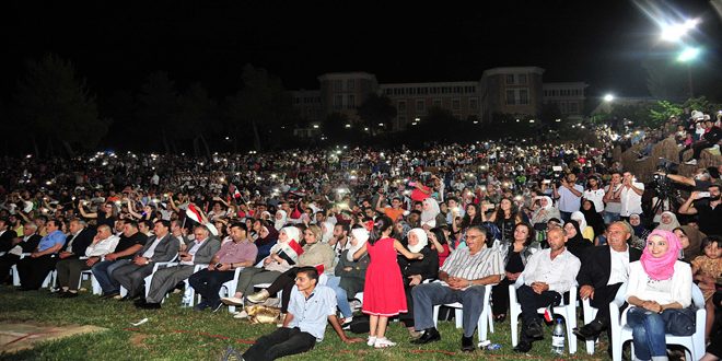 وختم الفنان اللبناني أيمن زبيب مهرجان الافتتاح المركزي بمجموعة من أجمل أغانيه التي بينت حبه وعشقه لسورية وأهلها وجيشها وعبر عن فرحه وسعادته لوجوده في سورية مجددا وهي تحتفل بالإنتصار.