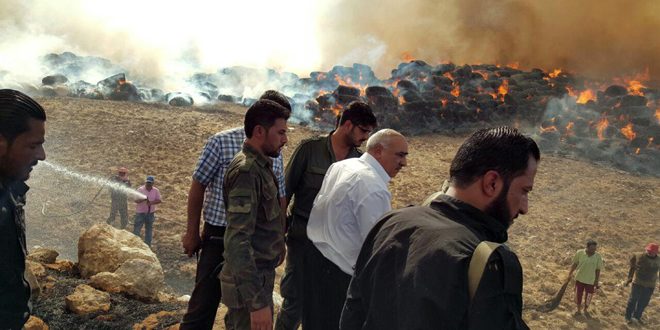 وقال محافظ الحسكة المهندس محمد زعال العلي في تصريح لمراسل سانا إن “المجموعات الإرهابية عاثت فسادا بمخزون الأقطان في المدينة ، وحاليا تم استنفار كل الجهات للسيطرة على الحريق وعزل مخزون كميات الشعير المخزنة ضمن المركز”.