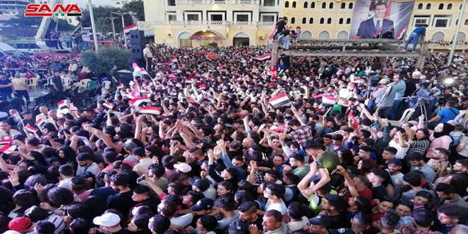 حشود غفيرة في ساحة السيد الرئيس بمدينة جبلة احتفاءً بفوز الدكتور بشار الأسد بالانتخابات الرئاسية