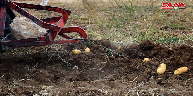 حصاد محصول البطاطا في قرية عسال الورد في القلمون