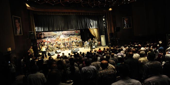 تخليدا لذكرى حرب تشرين التحريرية أقام اتحاد عمال دمشق بالتعاون مع الإدارة السياسية مساء اليوم حفلا فنيا بعنوان “بانوراما حرب تشرين” أحيته فرقة اتحاد عمال دمشق على مسرح صالة الثامن من آذار بحضور فعاليات حزبية ورسمية وشعبية.