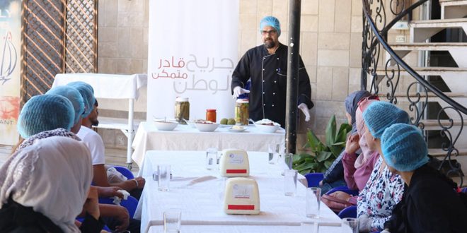 بهدف توفير مورد دخل مستدام للجرحى وأسرهم أقام مشروع جريح الوطن في محافظة حماة بالتعاون مع هيئة تنمية المشروعات الصغيرة دورة تدريبية لتطوير مهارات الجرحى في الصناعات الغذائية ومساعدتهم في تعزيز مشاريعهم الاقتصادية.