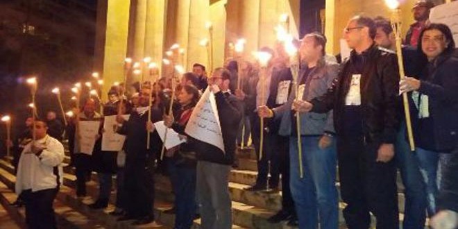 وحمل المشاركون في الاعتصام الذي نفذ مساء اليوم أمام وزارة البيئة اللبنانية وسط بيروت المشاعل وارتدوا ثيابا سوداء مطالبين برحيل النواب وإجراء الانتخابات على أساس قانون النسبية مشيرين الى عدم جدية الجهود التي بذلت في ما يخص موضوع النفايات متهمين السلطة بعرقلة الموضوع داعين إلى إعادة تشكيلها على أسس أكثر عدالة.