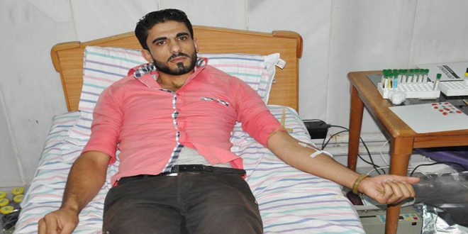 حملة تبرع بالدم في المدينة الجامعية بحمص دعما لأبطال الجيش العربي السوري