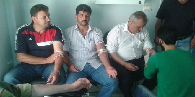 وأكد المشاركون في الحملة أن التبرع بالدم لجرحى الجيش العربي السوري هو تقدير لتضحياته وتصديه لأعداء الوطن وتأكيد على أن الدم السوري واحد والجميع يد واحدة حتى إعادة الاستقرار والأمن إلى ربوع الوطن.