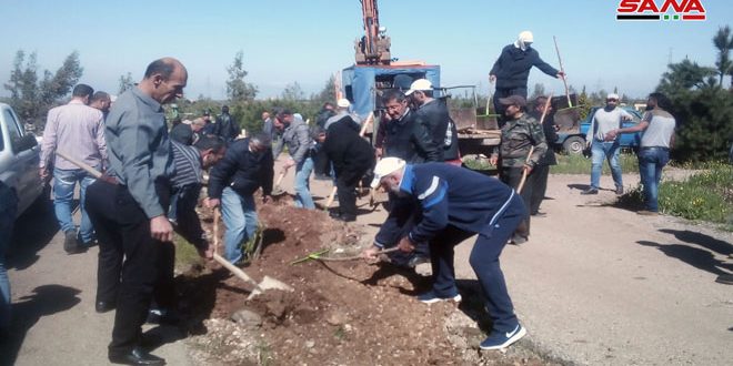حملة تشجير في المدخل الجنوبي لمدينة السويداء