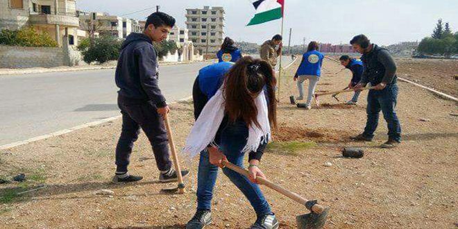 بمشاركة أكثر من 150 شابا وشابة نفذت رابطة سلمية التابعة لفرع منظمة اتحاد شبيبة الثورة بحماة حملة تشجير في مدينة سلمية.