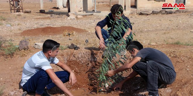 بهدف تجميل مدخل بلدة الطيبة بريف درعا وتحسين الواقع البيئي نفذت الفعاليات الرسمية والشعبية اليوم حملة تشجير لمدخل البلدة.
