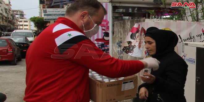 وتضمنت فعاليات اليوم الأول من الحملة التي تستمر أسبوعاً توزيع 250 عبوة من المعقمات على المواطنين أمام مركز السورية للتجارة في حي المشبكة وفي مدخلي المدينة الجنوبي والشرقي.