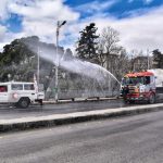 وانطلقت حملة التعقيم من ساحة يوسف العظمة وسط دمشق عبر أربعة صهاريج وعدد من الشاحنات وضع عليها خزانات مياه محملة بمواد تعقيم وتستمر الحملة عدة أيام وتشمل جميع شوارع المدينة وأحيائها.