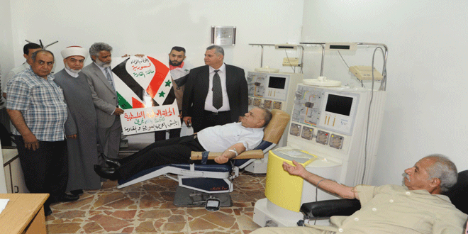 وأكد عدد من المشاركين في الحملة التي أقيمت في بنك الدم بدمشق تحت عنوان “الوفاء بالوفاء لسورية حاضنة المقاومة والصمود” أن مشاركتهم تأتي دعما للجيش العربي السوري الذي يحارب الإرهاب التكفيري الظلامي حيث رأت صفاء خالد و دعاء علي سكافي و يوسف علي أن المشاركة في حملات التبرع بالدم هي “أقل واجب يمكن تقديمه لأبطال الجيش العربي السوري المقاوم والصامد الذين ضحوا بدمائهم وارواحهم دفاعا عن ارضنا وكرامتنا”.