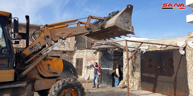 وأوضح رئيس الدائرة المهندس حسن شاهين في تصريح لمراسل سانا اليوم أن الأعمال بدأتها الورشة من أمام المسمكة وشملت إزالة التجاوزات على الرخص الممنوحة والأحواض والخيم التي أقامها أصحابها على الملك العام وتعيق حركة المرور في الحي.