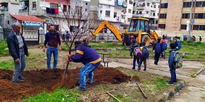 بدأ مجلس مدينة جبلة حملة لإعادة تأهيل الحدائق وزراعة الأشجار.
