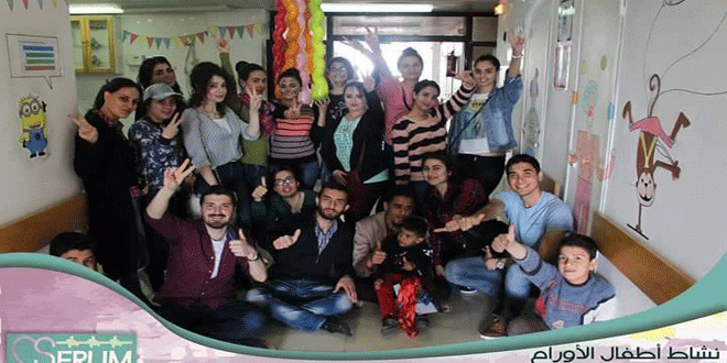 أما نشاط الدعم النفسي المقدم لأطفال السرطان فتحدث عنه الطالب بكلية الصيدلة يزن عبدو والمتطوع في فريق سيروم قائلا “قام فريق سيروم ومتطوعو جمعية صناع السلام بزيارة جناح الأطفال في قسم الأورام ضمن مشفى تشرين الجامعي في  اللاذقية حيث قمنا على مدى يومين وبالتعاون مع إدارة مشفى تشرين الجامعي وإدارة قسم الأورام بدعم الأطفال وأهاليهم نفسيا ورفع معنوياتهم معتمدين على فعاليات تجذب الأطفال بالدرجة الأولى كالرسم على الوجوه والتلوين ومسرح الدمى والعزف على الغيتار”.